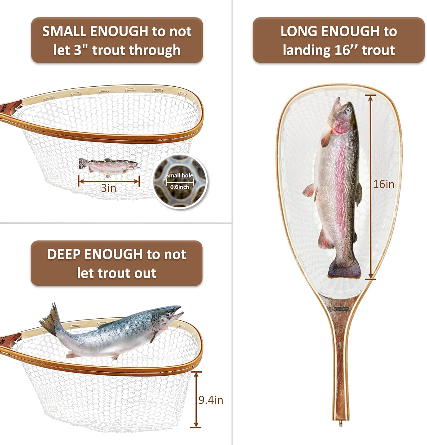 – **Premium Wooden Frame**: The net boasts a sturdy wooden frame that is not only durable but also aesthetically pleasing, adding a touch of classic charm to your fishing gear.